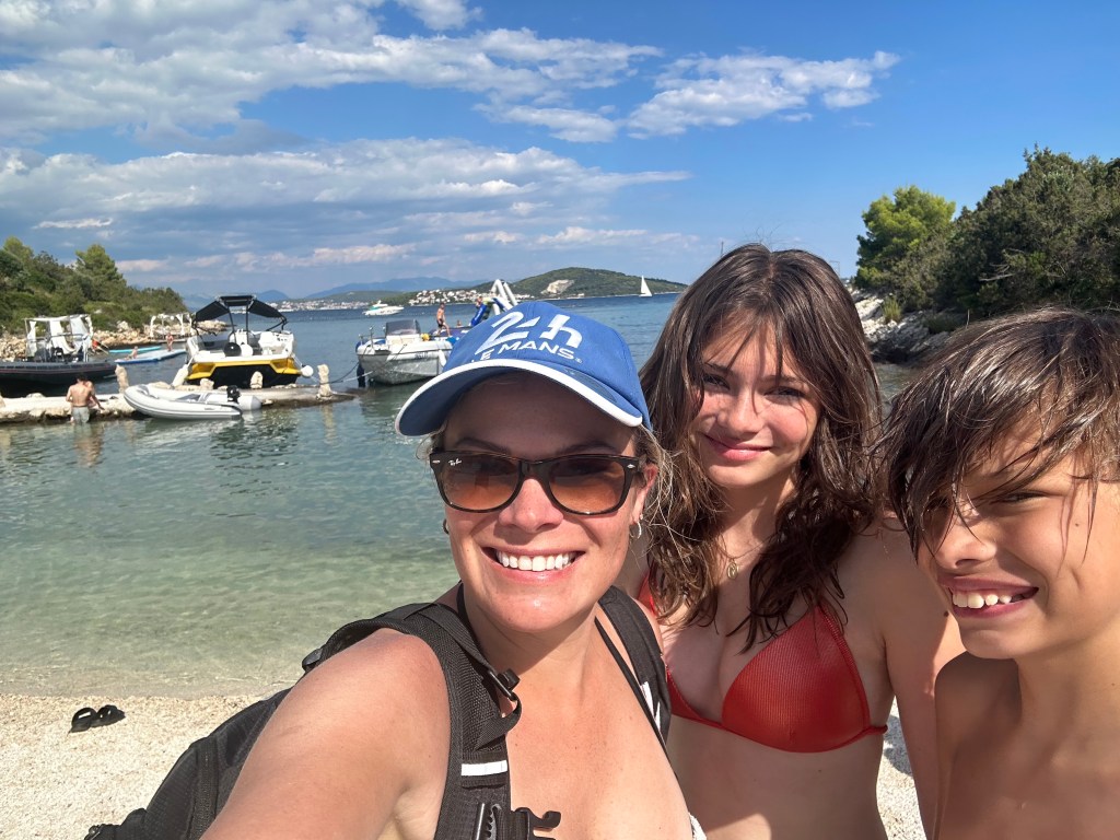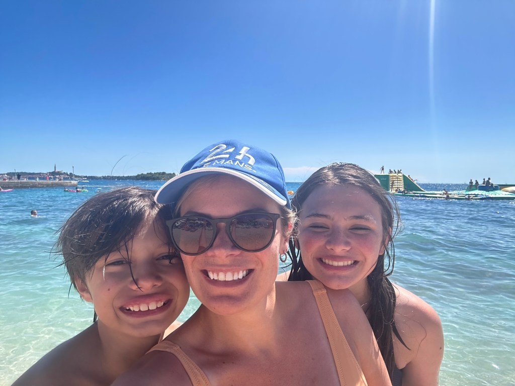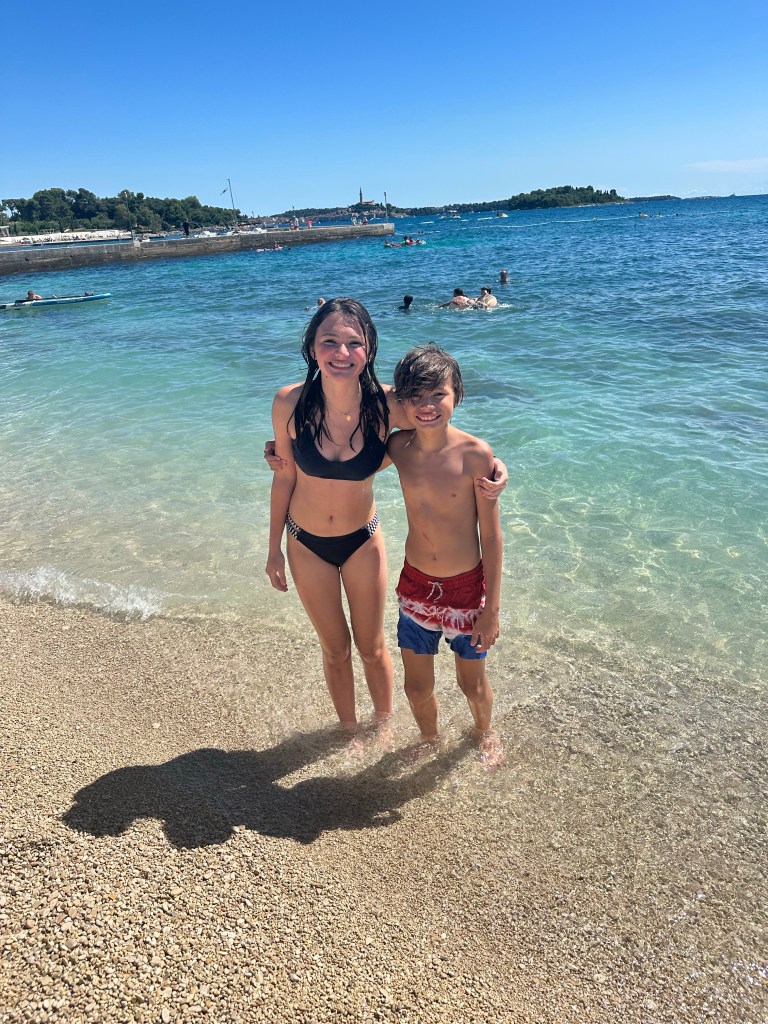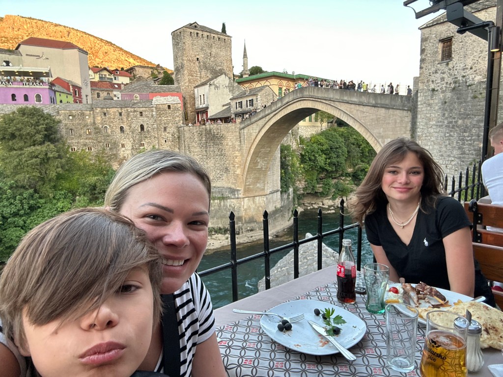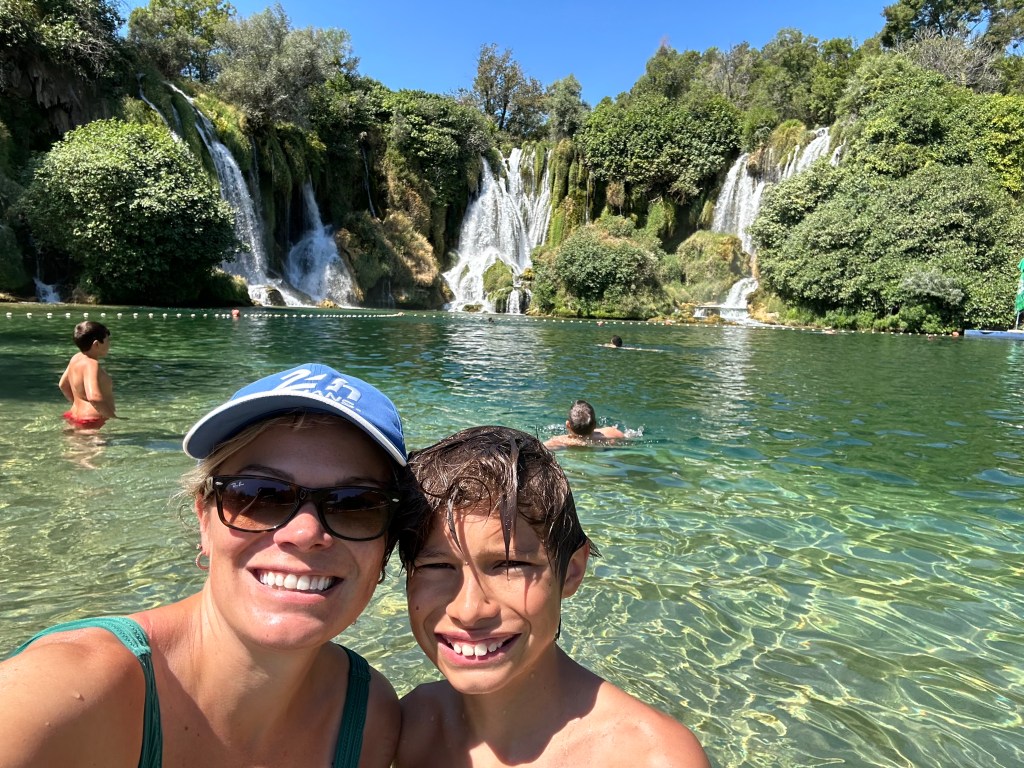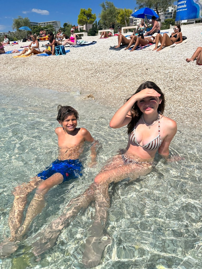 Friday, we packed up again and departed our apartment in Split. Before leaving the area, we stopped at a beach just outside of the city center. The water was so blue here! The kids and I floated for a few hours while Matt sat on the beach. We stopped at a food court in a mall for lunch before continuing our drive to Bosnia.