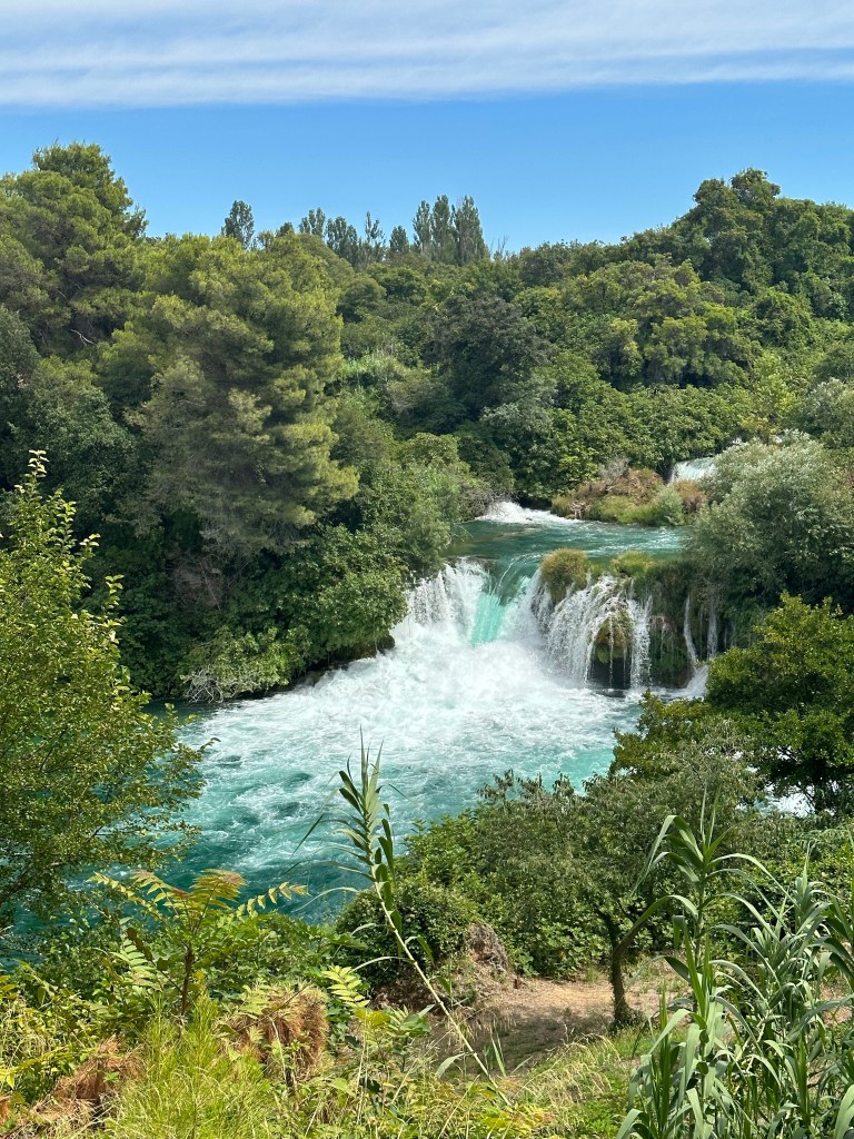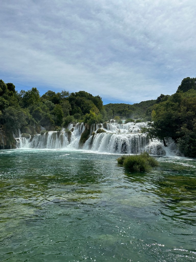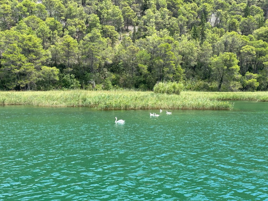 Wednesday, we were back on the road again. We drove about two hours before reaching Krka National Park. We were excited to see another national park filled with waterfalls, but this one, you could swim in! When we arrived, we boarded a boat that would take us through the marsh to the base of the waterfalls.