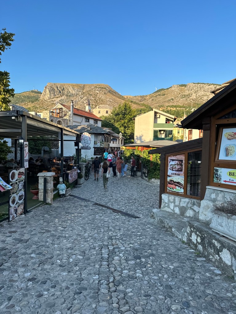 We had dinner in a restruant overlooking the Old Bridge and river and heard the call to prayer again. After dinner, we stopped in a supermarket for 2 liters of water, a half liter of milk, and a liter of Coke zero. The total came to less than a $1. What is this place?! How can they afford to do this when its so much more expensive just across the border? It makes you think a lot about corporate up-selling.