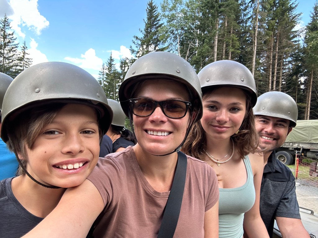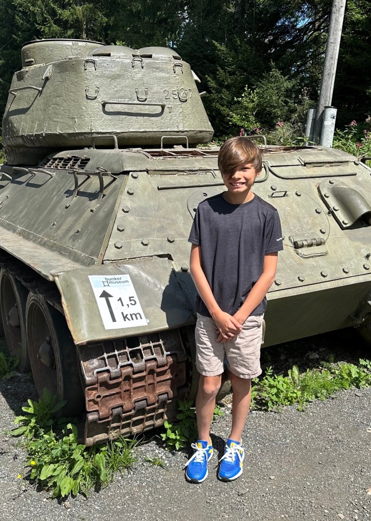 Sunday was our last day on the road. We left Zagreb after breakfast to make the nine hour drive home. The first stop was on the Austrian-Slovenia border at the Wuzenpass Bunker Museum. Ohhhh the Bunker Museum. We stopped here during our first summer on the way home from Lake Bled and Ryan has been asking to return ever since. We tried to take him back last year but of course it was closed the day we went. This time, we were more successful. We toured the outdoor museum and bunker again and were all able to take a ride in the working tank that they have. This time, they were even serving food “from the camp stove” and we all had Goulash soup for lunch. Ryan said he loved it even more this time then last time.