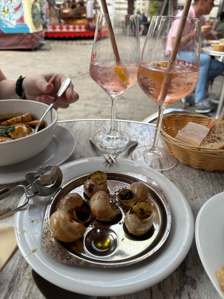 We started in Dijon. Our car ride ended up only being about four and half hours and we arrived in time for lunch. We found a restaurant in central Dijon that served Burgundian specialties, which includes Escargot, Beef Burgundy (surprise), and poached eggs on and in everything; on salads and sandwiches, and in soups and gravies.