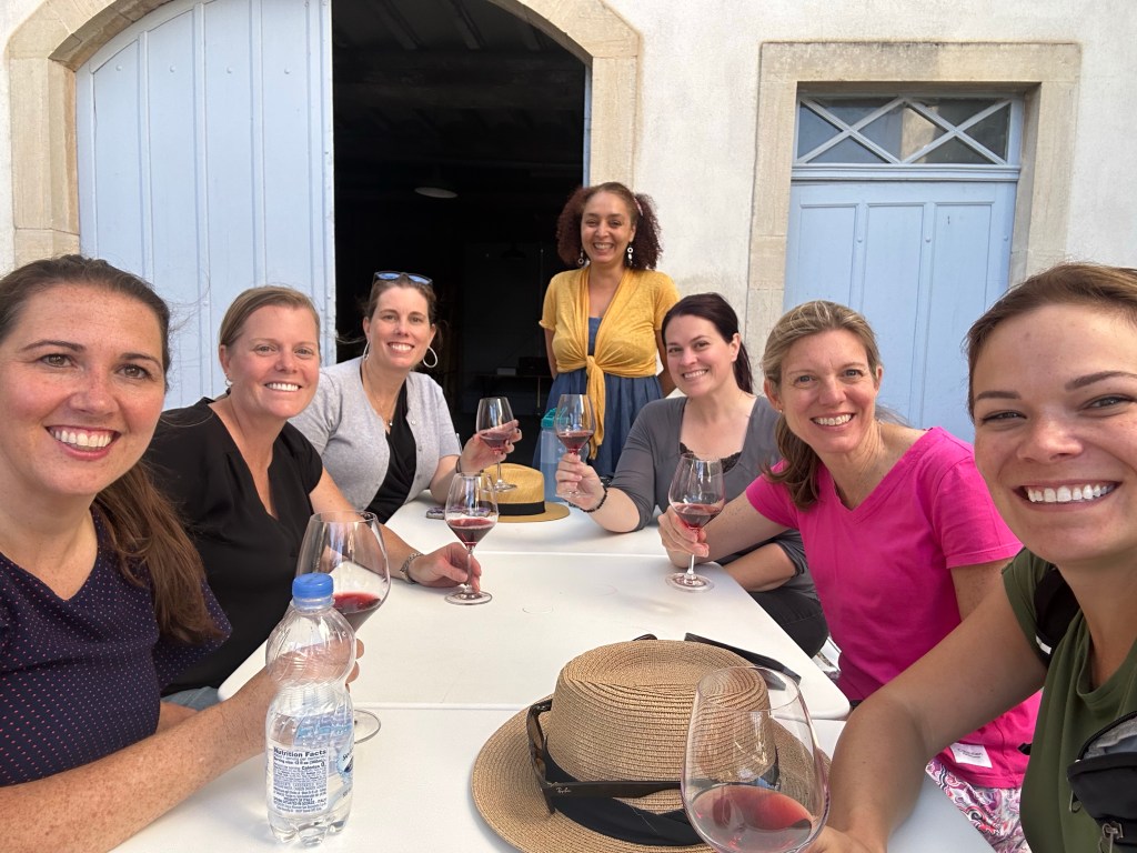 After our walk and some shopping, we got checked into our hotel and then went to a wine tasting. There, for only 20 Euro, we were given cheese plates with bread, and sampled six Burgundian wines and a liqueur. What a deal! The sommelier that conducted the tasting was actually a college student, studying to be a wine exporter at the Dijon University. We asked if he knew what the festival was for and he explained it was a free concert put on by the city to celebrate “Back to School” at the University of Dijon. Dijon is a city of 300,000 and 60,000 of them are students so the city hosts several events like this one. We all bought multiple wines and then headed to dinner.