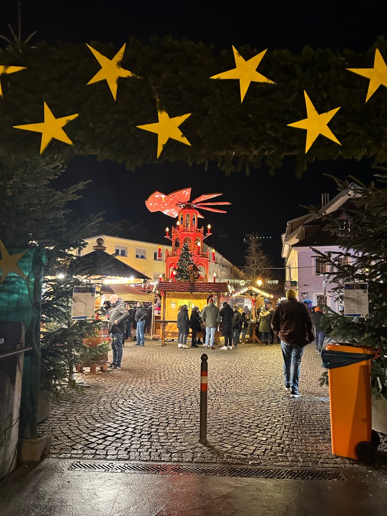 Monday night, a friend and I visited the Bruchsal Christmas Market. Bruchsal is about an hour north of us, near Heidelberg. The market was small, but cute and we were able to find glüwein and langos for dinner.