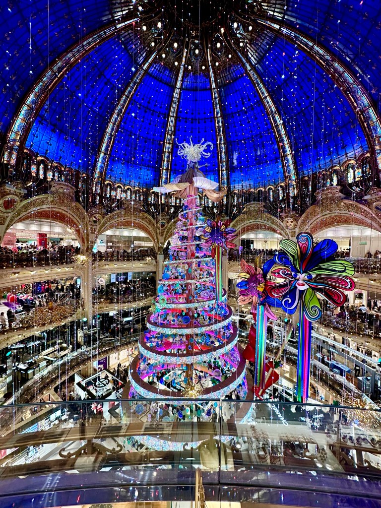 Unfortunately, we found that most views of the dome had been blocked off by sales displays. In recent years, the store has been overrun with tourists trying to get a picture of the tree. They crowd up the store and never make a purchase (ourselves included) so the best options left if you want to see the tree are to make a reservation in the coffee shop or restaurant overlooking the dome, or wait in the hours-long line to view the tree from a platform. I found a short clothes rack and held my phone over my head to snap the picture below as a French sales associate told me to move along. I got really lucky with the one shot below.