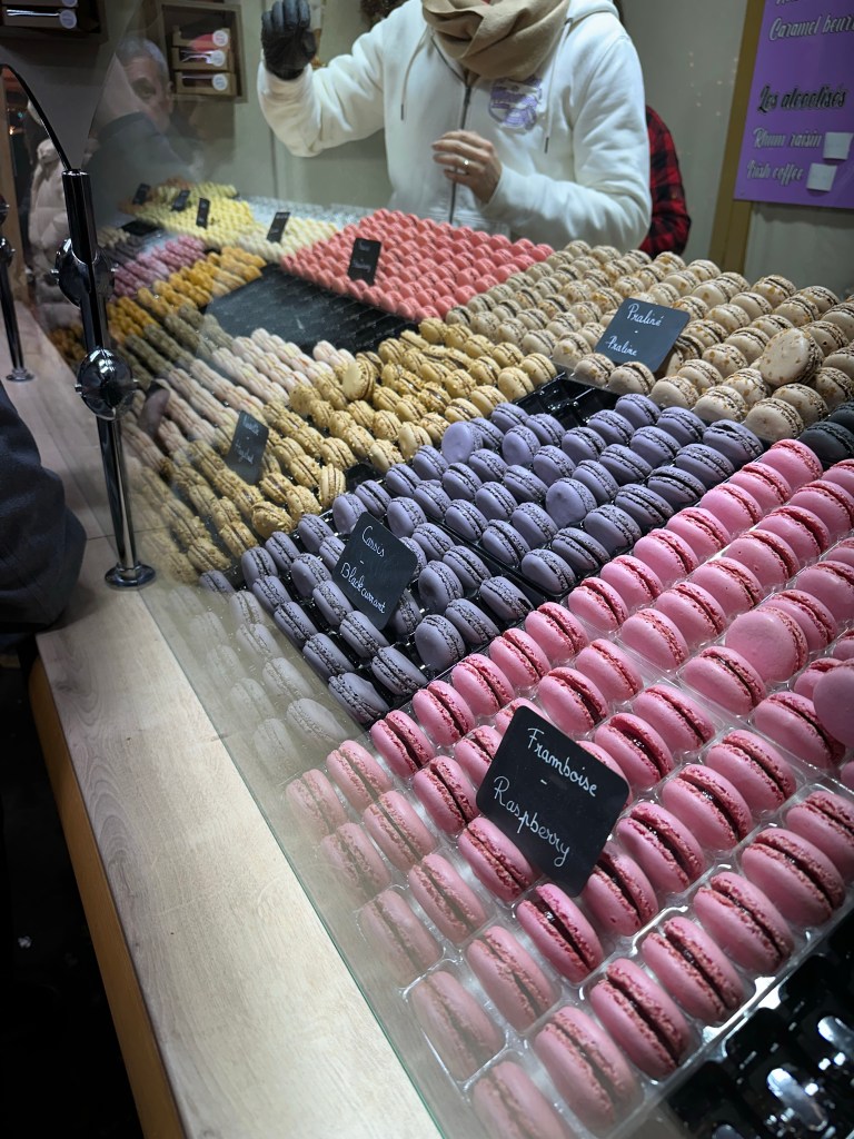 When we left the shopping district, we headed to Montmarte. First, we stopped at the Montmarte Christmas Market. The market itself was small but did have a huge stall selling macarons, which we bought a couple of.