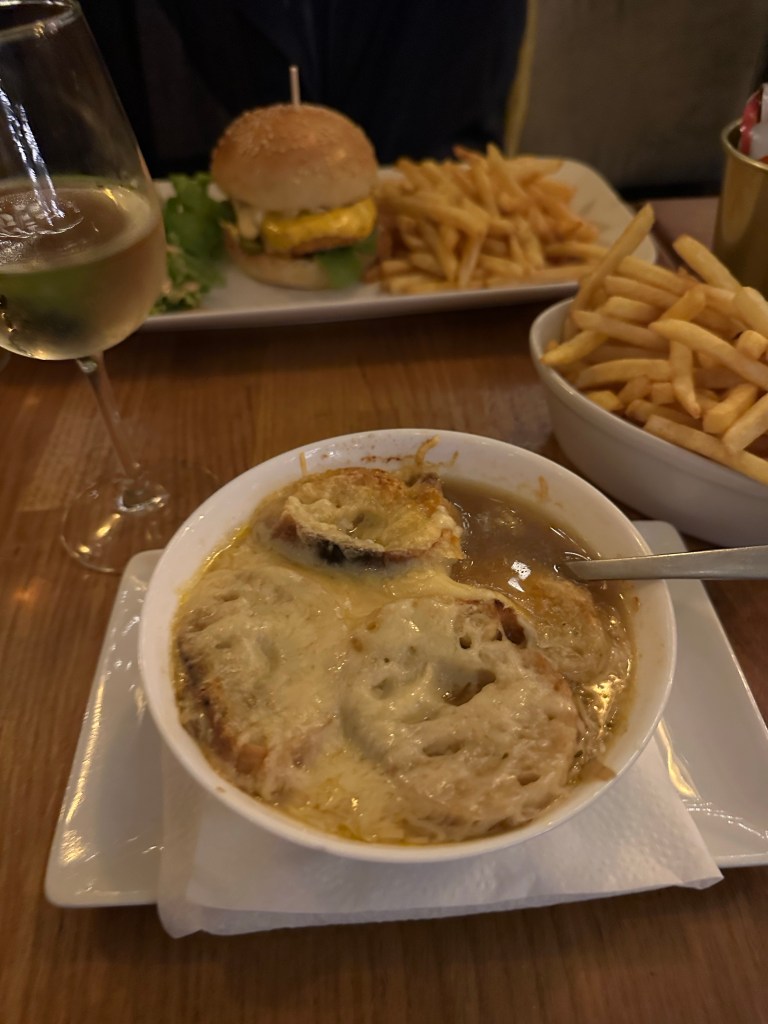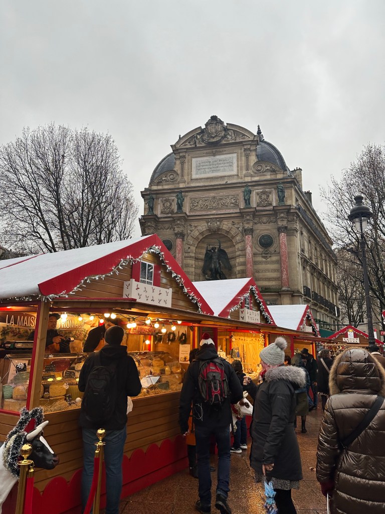 Afterwards, we crossed the river again, this time in the other direction into the Latin Quarter and found another Christmas market at Fontaine Saint-Michel. We had another Vin Chaud and then walked around the Latin Quarter until we found another restaurant for lunch that served Onion Soup.
