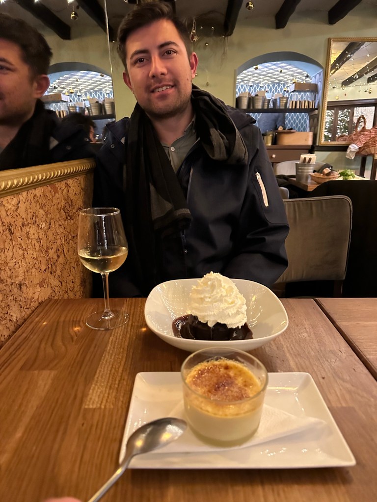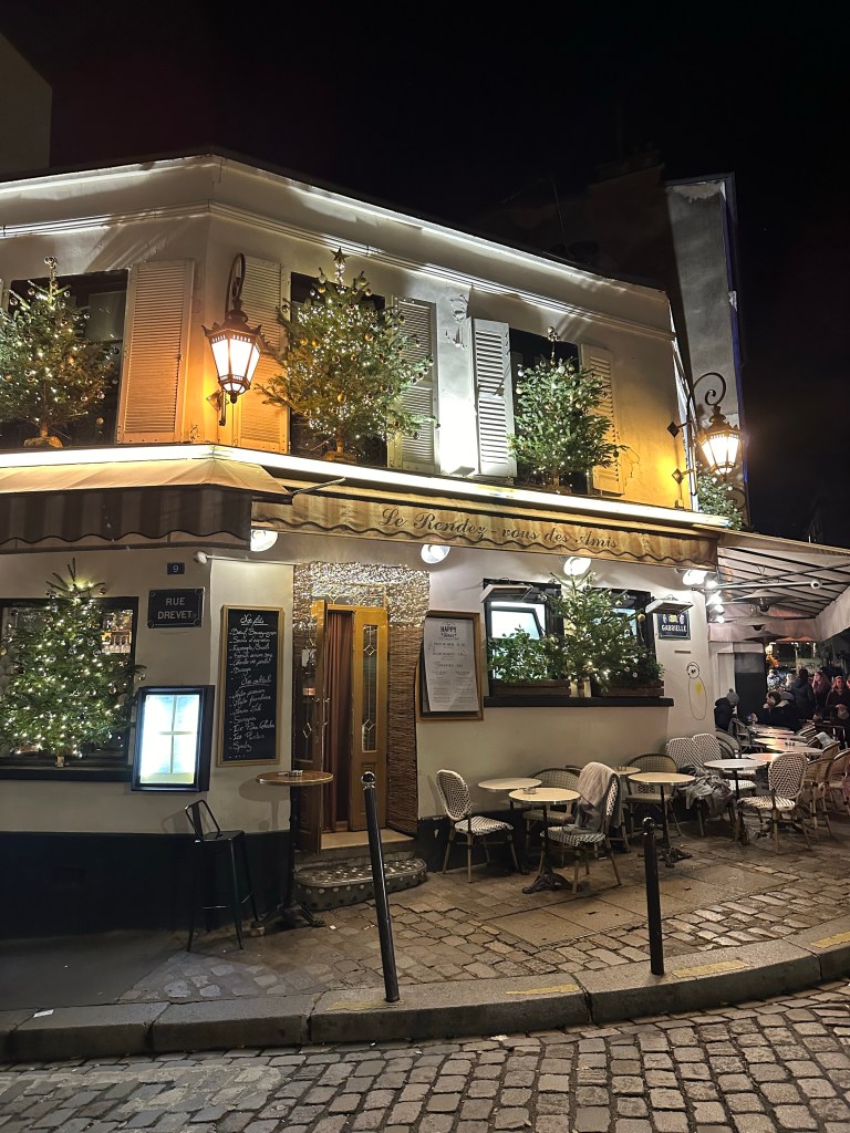 The restaurant was small and cozy and decorated for the holidays with Christmas lights strung across the ceiling and ornaments hung from the light strands. I had soupe l’oignon and pommes frites, and Matt and Ryan had burgers. We finished the meal with creme brûlée and chocolate mousse.