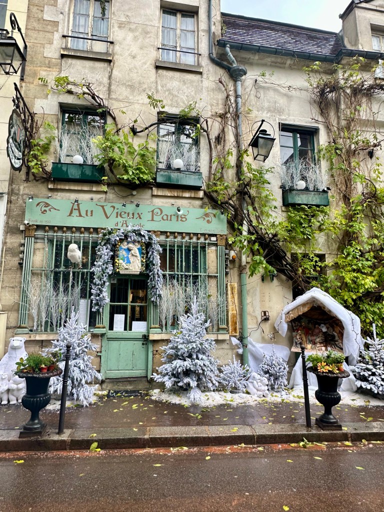 We crossed the river onto the Île de la Cité, the oldest part of the city. We veered down some streets to check out the Christmas decorations throughout the neighborhood.