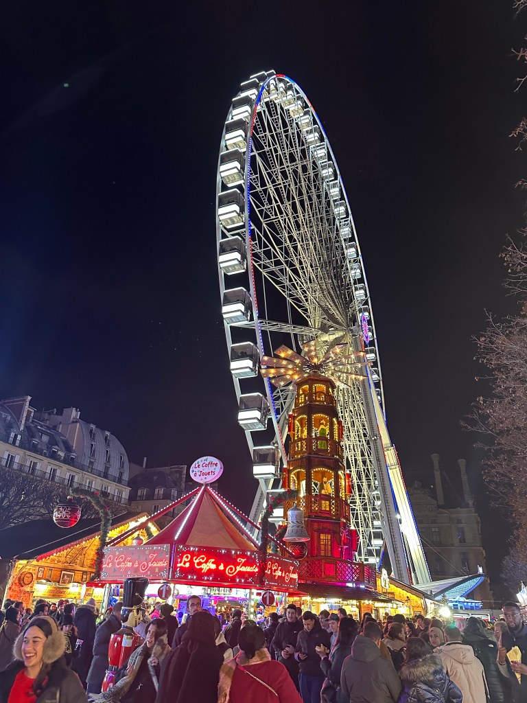 We walked all the way to Place de Concorde, which was almost a mile from the Eiffel Tower where we started. It was beautiful to get to see Paris lit up at night on our walk down the river. We shifted direction and then continued towards Tuileries Gardens where we visited the Tuileries Christmas Market.