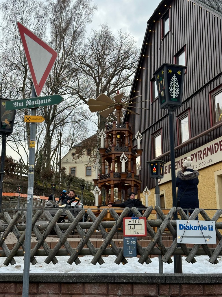 Tuesday, we departed and our first stop was Seiffen. Seiffen is an old mining town in East Germany. When its mine was cleared of ore in the 1600s, the town had to think of another way to sustain itself financially. They turned to wood working and it is where the Christmas pyramids, nutcrackers, and several other Christmas figurines are made. Unfortunately, by the time we got to Seiffen, the town was packed with tour bus loads of people so we weren’t even able to get out of the car. We did see lots of Christmas pyramids and nutcrackers and I was able to take a couple of pictures out of the window before we decided to continue our drive to Dresden.