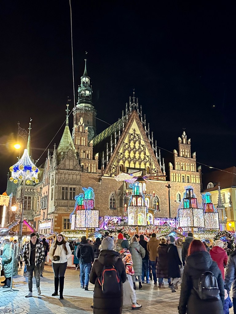 We quickly did a little reading up on Wrocław and found out that this part of Poland was actually part of Germany until World War II, and was called Breslau. However, the state of Silesia, of which it’s the capital, was always culturally and ethnically heavily influenced by the Poles. When boundaries were redrawn after the war, Silesia became part of Poland. So interesting! And, also explains why they have such a German-style Christmas market.
