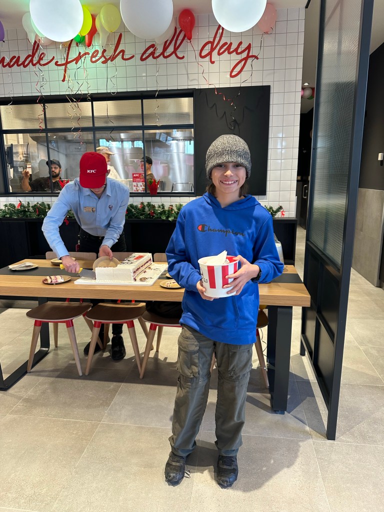 On the way to Krakow, we started getting hungry. We were so tired of eating McDonald’s, we decided to stop at a KFC. We found one on the GPS along our route and stopped there. Only Ryan and I went in and to our surprise, there were balloons, a cake, and music playing. We were confused but continued to place our order. Then, we noticed people walking around with red coupons. Google translate informed me this was the Grand Opening of this location. The coupon said the first 100 customers would get a bucket of chicken for 1 zloty, or about $.25. Ryan quickly reminded me we were order number 65 so we were entitled to our own bucket of chicken. We ordered, paid our zloty and proudly received our bucket. Matt and Brooklyn could not believe it when we got back to the car with all our chicken!