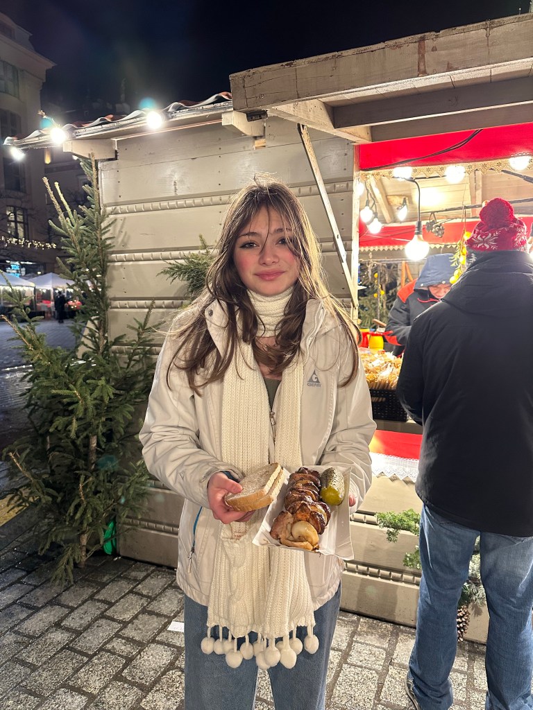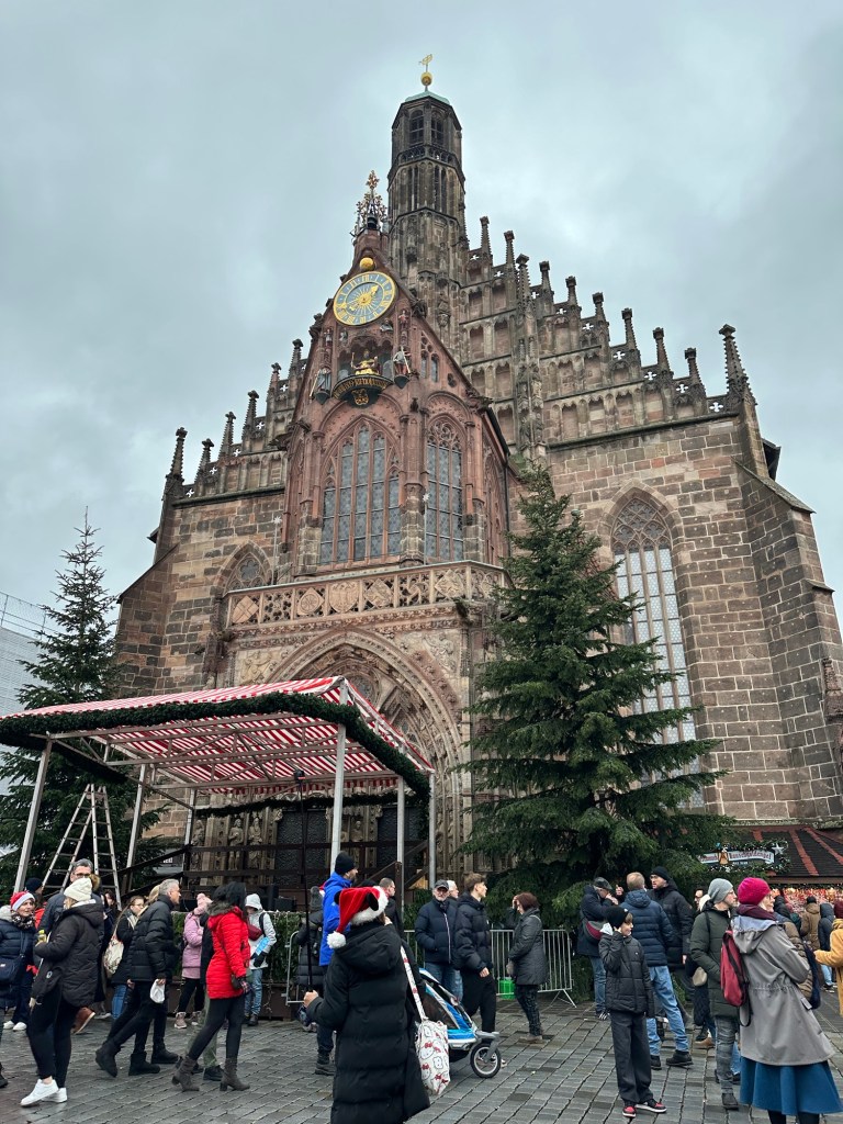 We did make one final stop in Nuremberg to visit their Christmas market. We got a mug almost immediately (€5 Pfand sheesh!) and then looked around for lunch. Matt and the kids went for steak sandwiches. When the customer after them went to order, the man told them, “see you next year!” The market was actually starting to shut down due to it being Christmas Eve. We visited Nuremberg in March of 2022 and I was reminded of how much we liked it. I hope we can come back another visit in the near future. I did not find a stall with food I wanted so I ended up grabbing a burger from Five Guys before we finished our drive home.