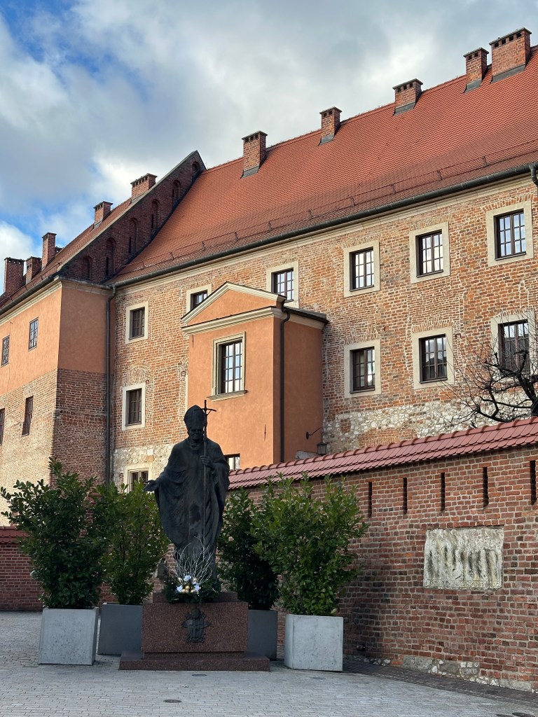 After breakfast Saturday morning, we took a walk around Wawel Castle. The castle was built in the 1300s as the fortress for King Casimir III. It is a huge complex which includes church, residence, and art museum. We only had time to walk around the grounds but will definitely make more time on a future visit to see it all.