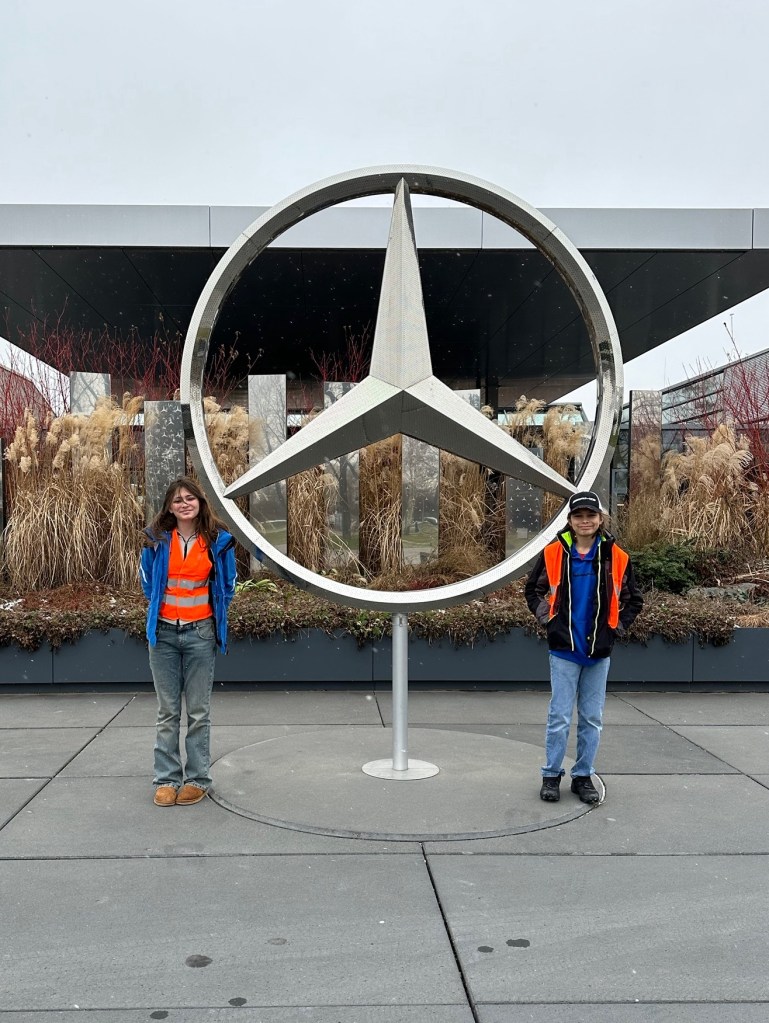 Monday was Martin Luther King Jr. Day, so the kids were out of school and Matt and I were both off work. Recently, the Mercedes Benz factory started doing guided tours again and we were lucky to score some last minute tickets. The factory is only 10 minutes from our house and something that we drive by several times a week so we were excited to get to see more of it.