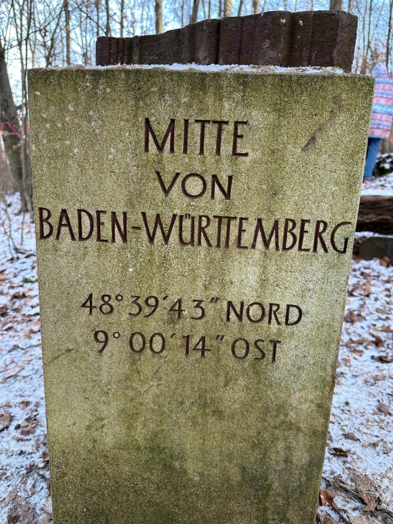 First, we hiked to the “Middle of Baden Württemberg”, the state that we live in. This didn’t take so long as it turns out it was only an eight minute drive and then ten minute walk in the woods to the stone marker. It’s so German to put a stone up to mark the center of something. Even more German, we were not the only ones there. When we arrived, there were three other groups of walkers. Apparently, the center stone is a “hugely” popular attraction!