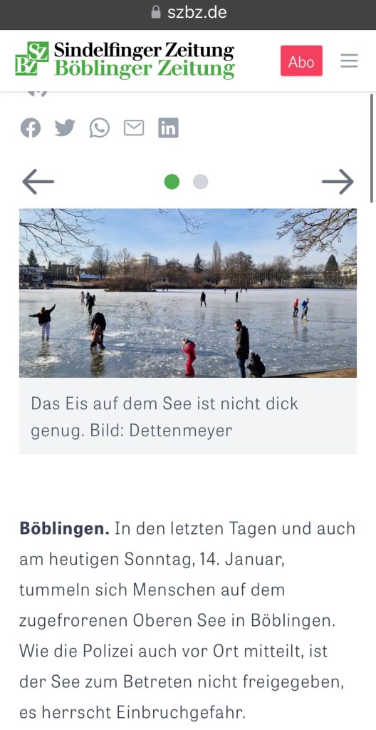 We finished off the weekend back at home getting ready for the week ahead. To our surprise, we found out that our ice-walking adventure on the Böblingen lake made the local paper, which we found pretty hilarious.