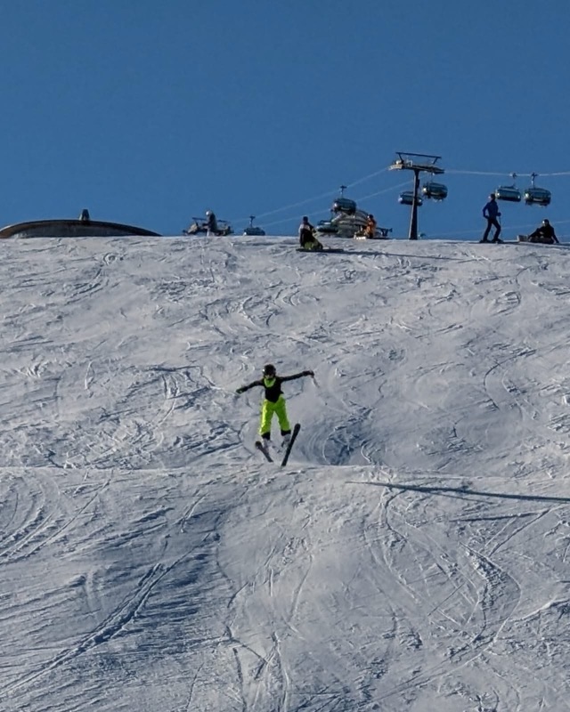 It’s also turning out to be a great opportunity for the kids to ski the way they want to. They are now far better skiers than we are, and far more adventurous. I don’t want to do the difficult runs anymore, and neither does Matt with his knee. When they ski with us though, they are stuck hanging back with us. These trips give them a chance to do all the black diamonds and terrain park jumps they want. We received a couple of great shots of Ryan living it up throughout the weekend.