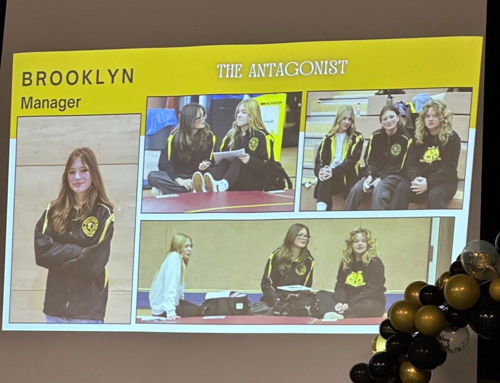 Thursday night, the wrestling team held their end-of-season banquet. Brooklyn was honored for her role as manager. We were all laughing to see that her team nickname is “The Antagonist” since she loves to tease everyone. She earned another varsity letter and a manager pin so was quite happy with herself. We were so proud of her too.