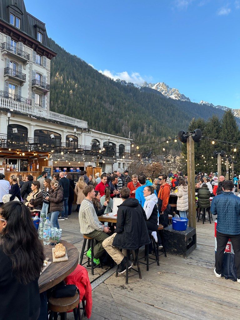 When we got back to Chamonix, the kids elected to hang out in the apartment while Matt and I tried out the Chamonix apres-ski scene. We headed down to La Folie Douce hotel. La Folie Douce is a chain of restaurants and hotels in France, known for their lively apres-ski parties. I wouldn’t necessarily call this one as lively as some of the mountain huts with DJs and dancing, but it was definitely popular.
