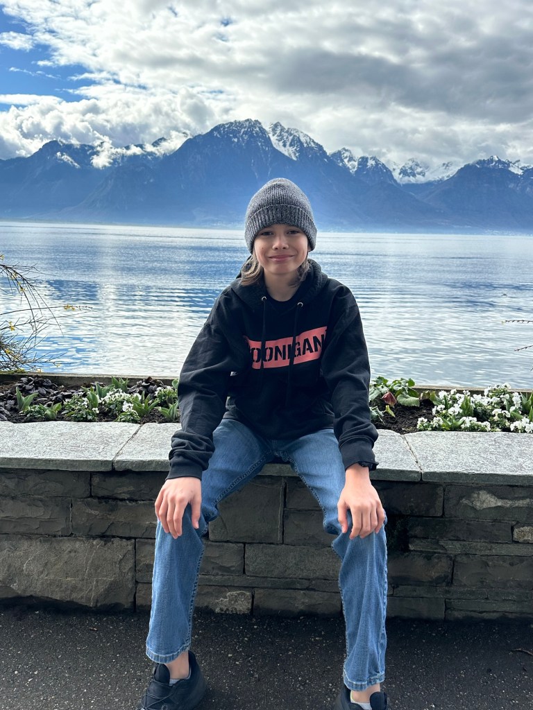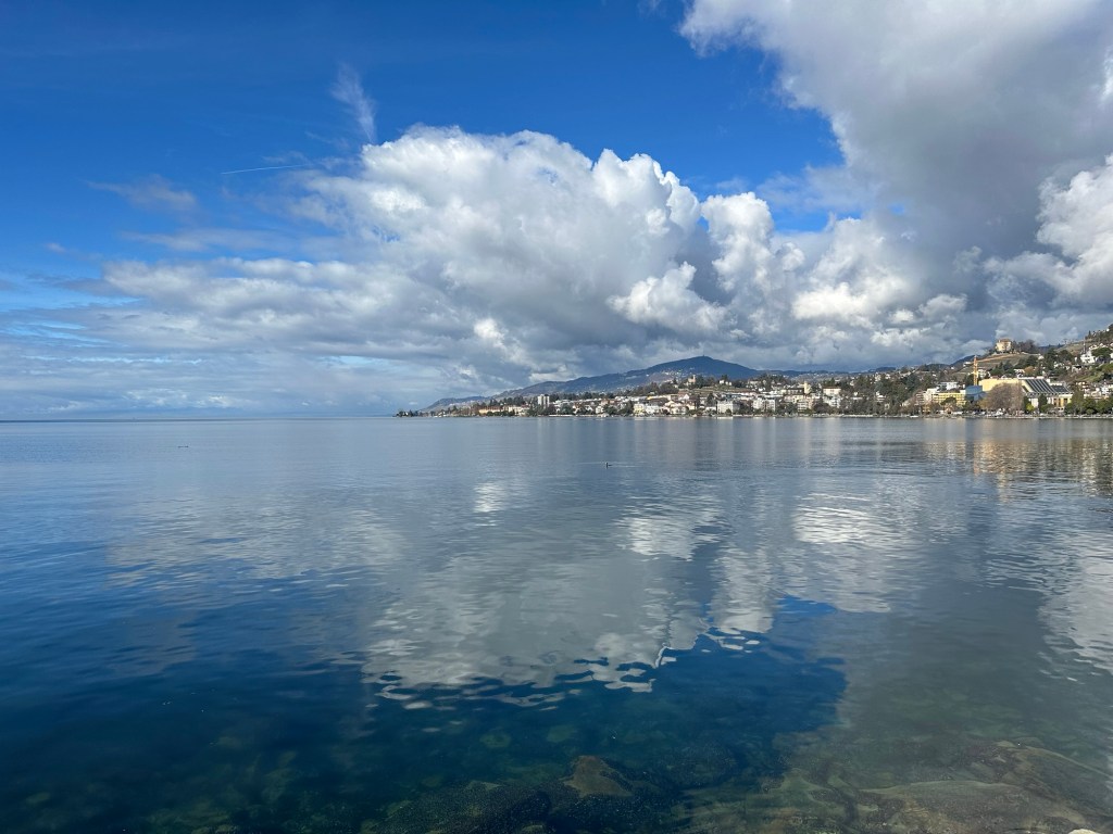 On Monday morning, we packed up and said goodbye to our Chamonix apartment. On the way home, we stopped for food in Montreaux and took in the views of Lake Geneva. It was a calm and clear day, and the lake was beautiful.
