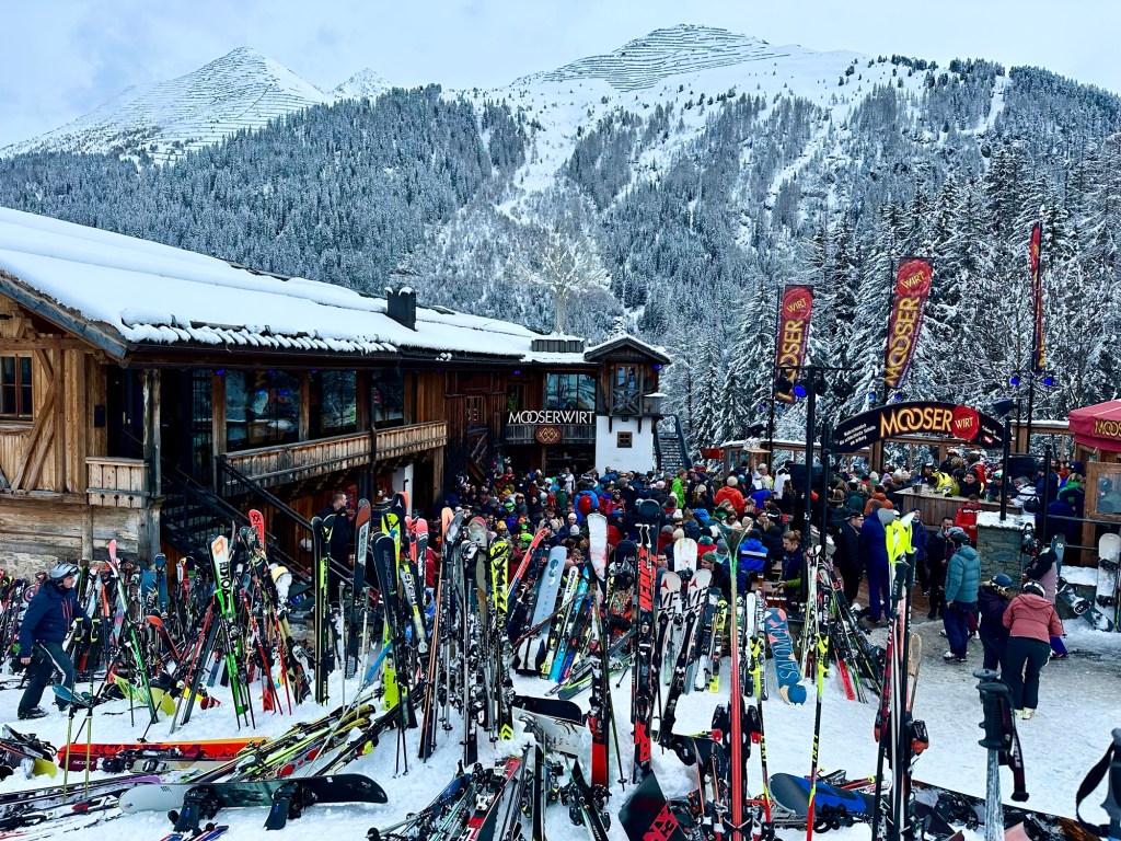 After lunch, we did a few more runs and then started skiing back down the mountain. We stopped at a couple of huts along the way to enjoy St. Anton’s famous apres ski scene.