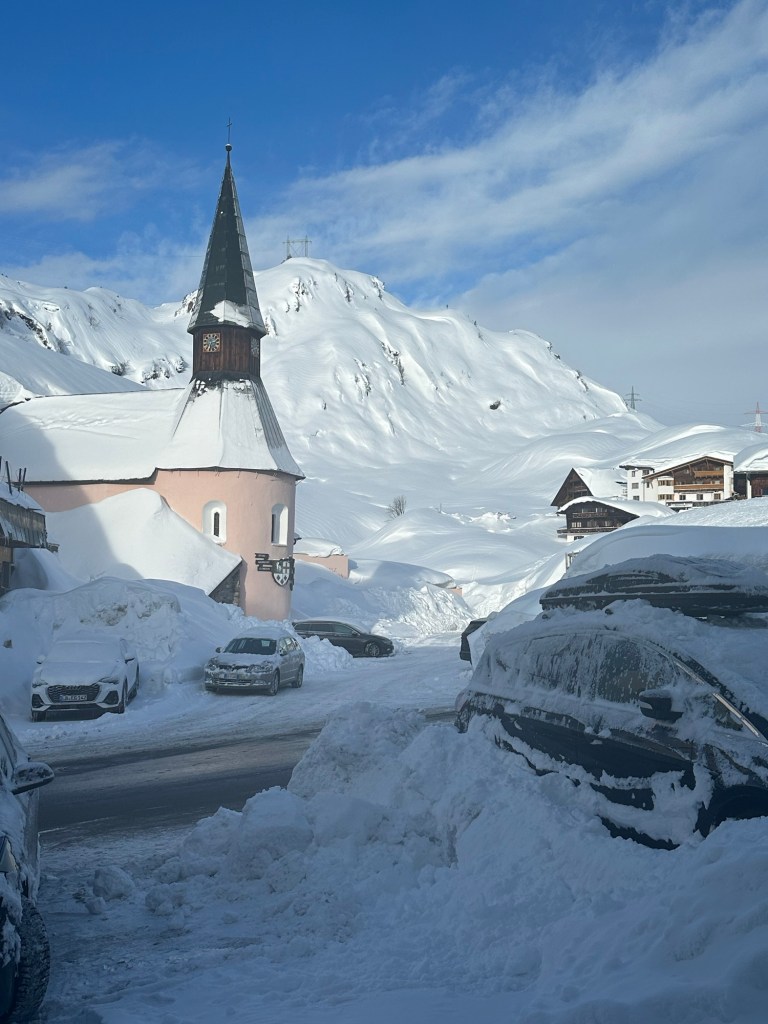 After the kids were settled on the bus, we dropped the dogs at the dog sitters’ and started our drive. St. Anton is the biggest ski area in Austria and where skiing was supposedly invented. Its also well known for its huge apres-ski party scene. For this reason, and for historical research purposes, of course 😉, we chose this as our parents-only weekend getaway. As we approached St. Anton, we noticed the temperature drastically dropped and there was fresh snow on the ground. It felt like a super treacherous journey up the winding mountain roads to our hotel!