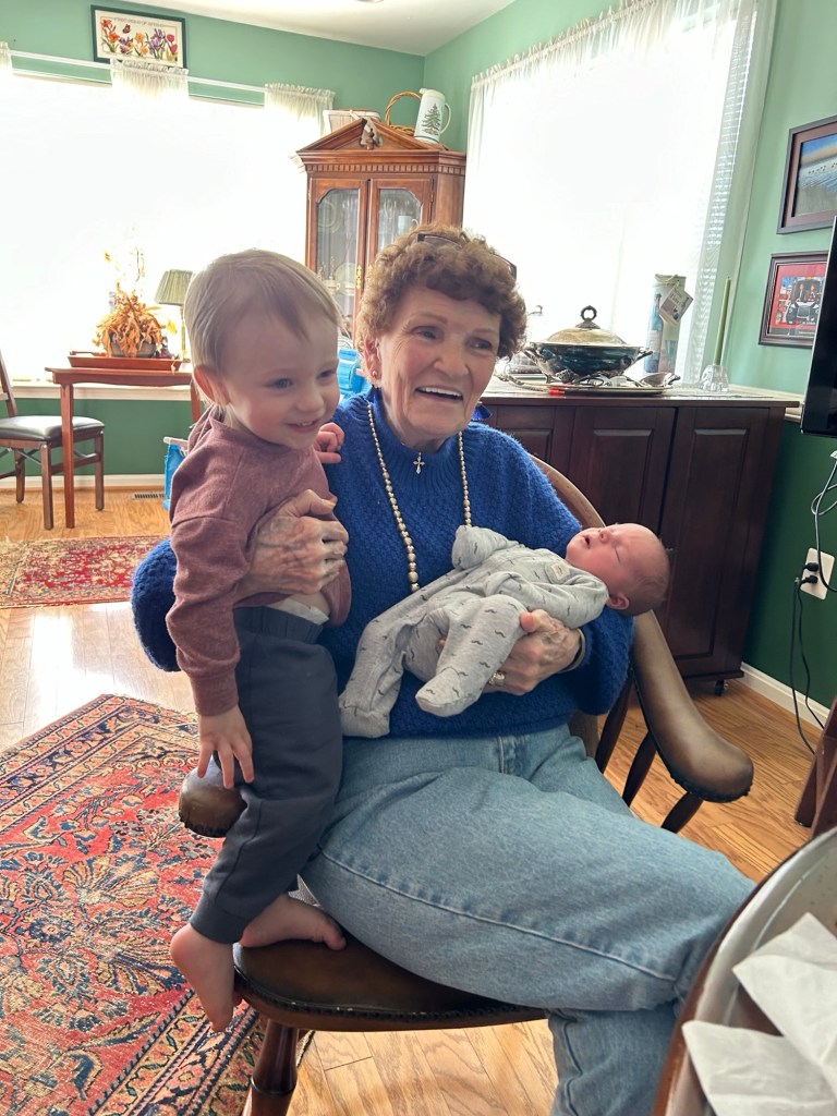 We ate lunch and my grandmother had fun holding Nix, and Tate had fun playing with toys and running back-and-forth between us.