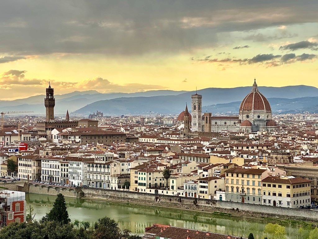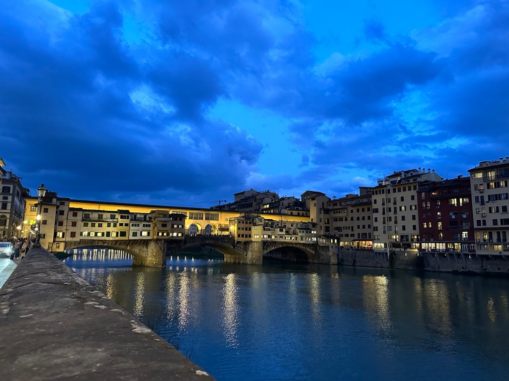 After we got checked into the hotel, we set off on an evening walk around town. We walked down the Arno River to the Ponte Vecchio, and then over to Piazza della Signoria.