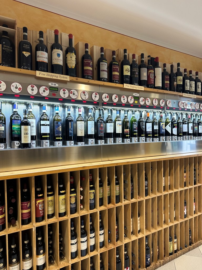 Our first wine shop issued us a “credit card” that we could insert into slots along a wall. Each slot corresponded to a different type of wine. The shopkeeper walked us through the different types and production styles. It was really interesting and fun. We stopped at a few other wine shops, hiked back up to the car, and headed to our next destination.