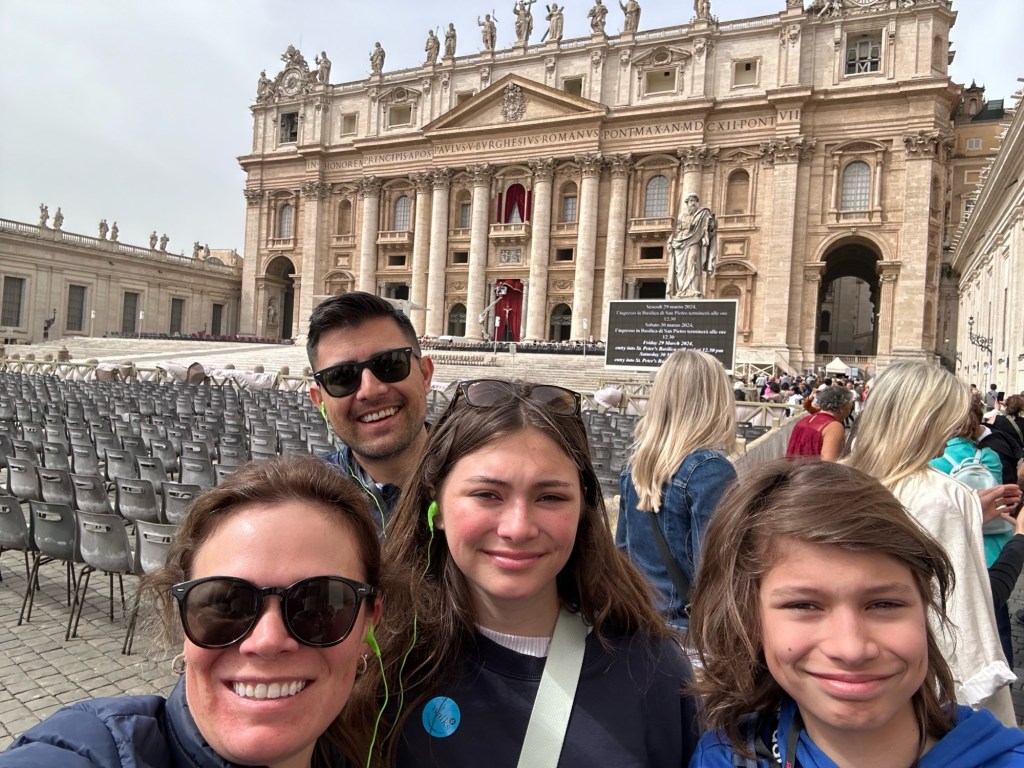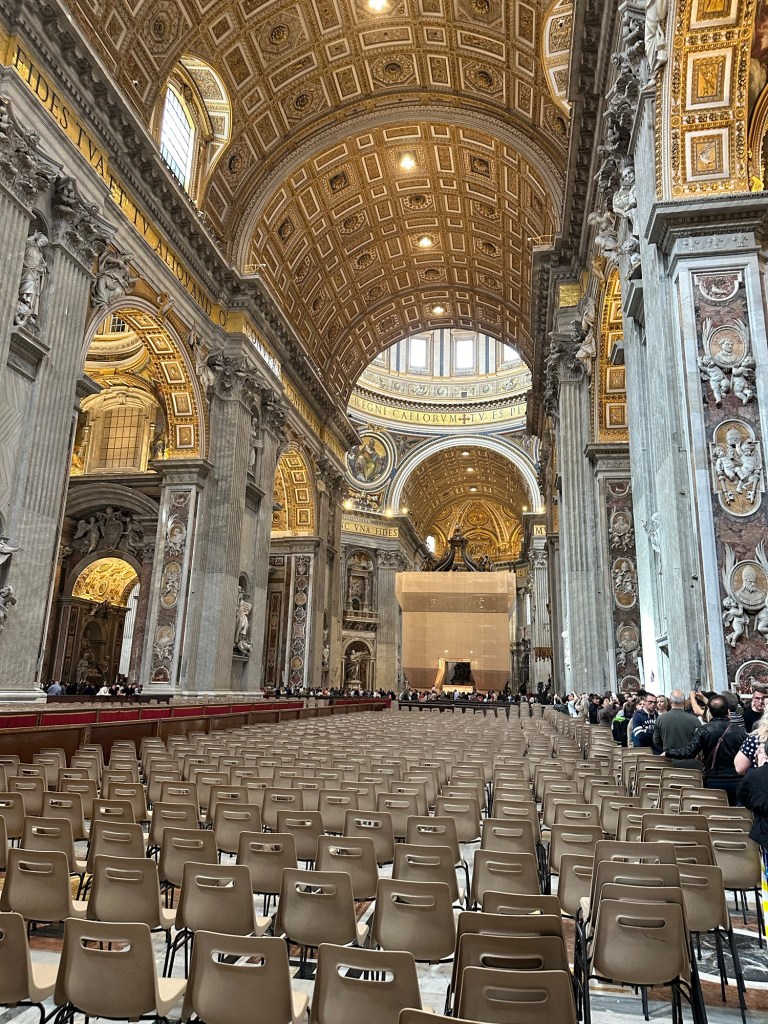 We were given about 20 minutes to take in the Sistine Chapel and then re-joined our guide for the remainder of the tour. We exited the Vatican museums and entered St. Peter’s Square, which was packed with people. It was Good Friday and St. Peter’s Basilica was closing early due to Good Friday mass being held there that night. There must have been thousands of people in the entrance line. Luckily, our access to the Vatican Museums meant that we could skip the line and enter right away.