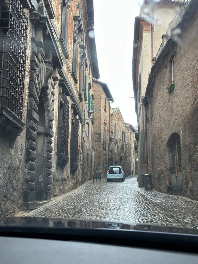 Our first stop was about two hours south in Orvieto; another Italian hill town, but just over the border from Tuscany in Umbria. I plugged in a destination for parking near the center of town, but our route kept taking us through tiny roads for residents only; some of the roads, our car would not even fit down.