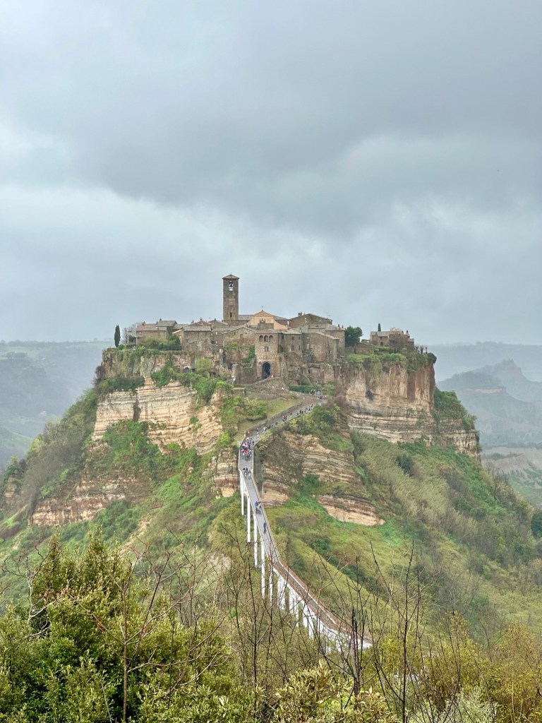 After lunch, we took the moving passageways back to the car in the garage and continued along our drive. The next stop was Civita di Bagnoreggio, which was another hour away. As we drove up into the mountains, we got a beautiful view of Orvieto from a distance; I made Matt pull over so I could get some pictures of it.