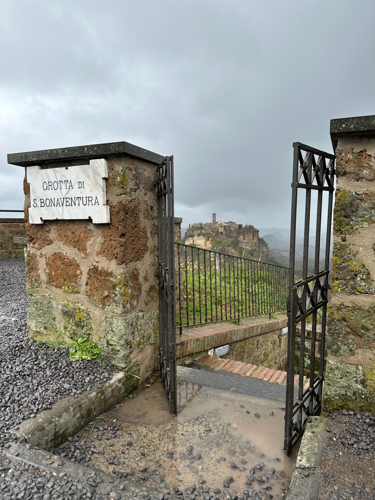 We finally made it to Civita, the drive-able base for Civita di Bagnoreggio and drove as far as we could. CdB is accessible only via a hike and pedestrian walkway. We parked the car and hiked a short distance out to the panoramic viewpoint.