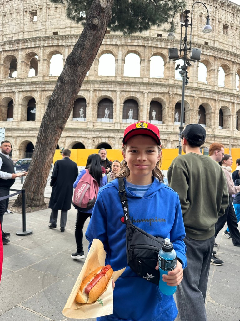 On our first full day in Rome, we woke up early as we had a tour of the Colosseum at 9:45am. We arrived in plenty of time to grab a coffee and a hot dog for Ryan before the tour started.