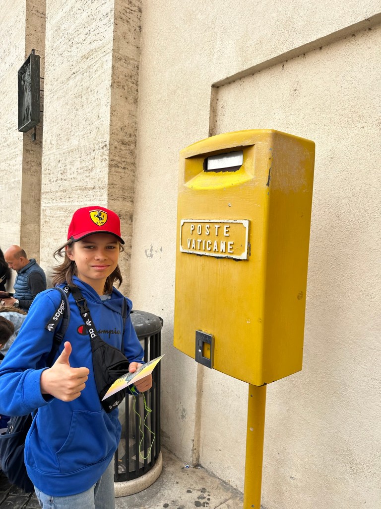 After we exited the Basilica, we visited the Vatican post office. We bought some postcards, wrote quick notes, and mailed them to a couple of people, including ourselves, so that we could collect the rare Vatican post stamp.