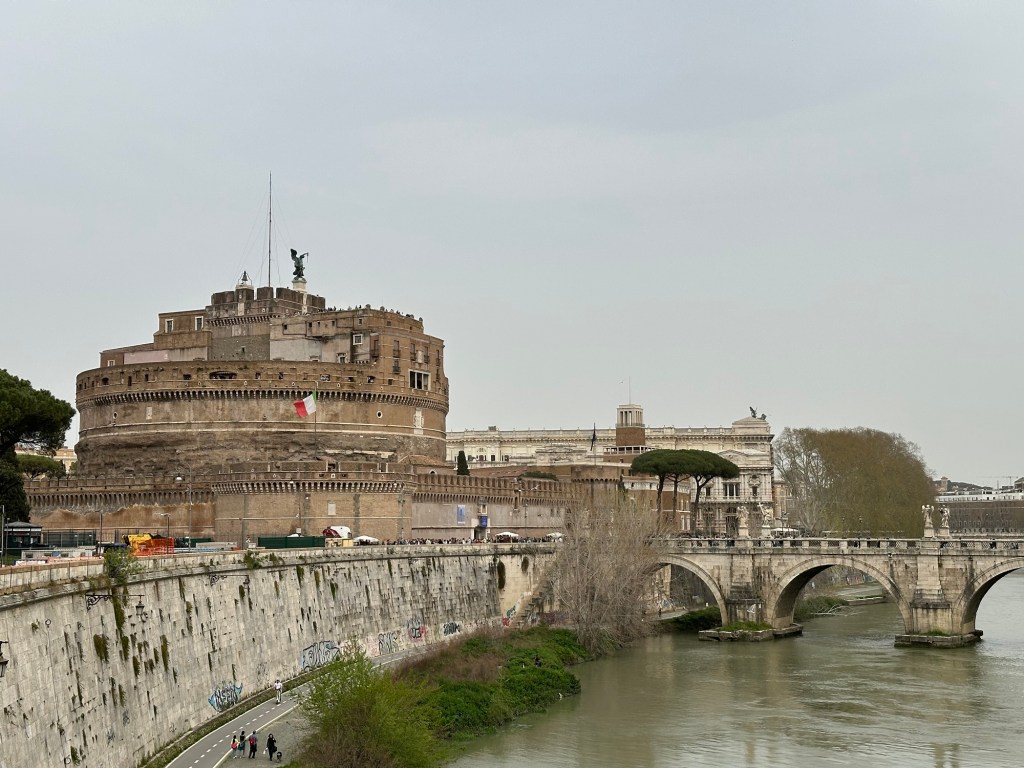 Our final stop in Rome was to walk across the Vittorio Emmanuel Bridge and view the Castello Saint Angelo. The bridge was super crowded so we didn’t stay long. That gave us enough time to take a short walk around the grounds before grabbing a taxi and heading back to the hotel.