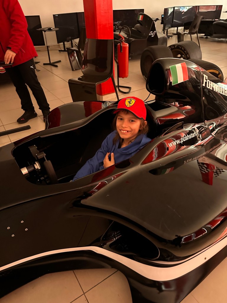 This museum was about the same size as the Enzo Ferrari House Museum and a similar format. It did not take long to view all of the exhibits of cars and trophies. When we were done with the museum, we headed to the simulator, where all four of us took turns; Ryan even got to go twice. My skill level was a little better than the day before, but not by much 😉.