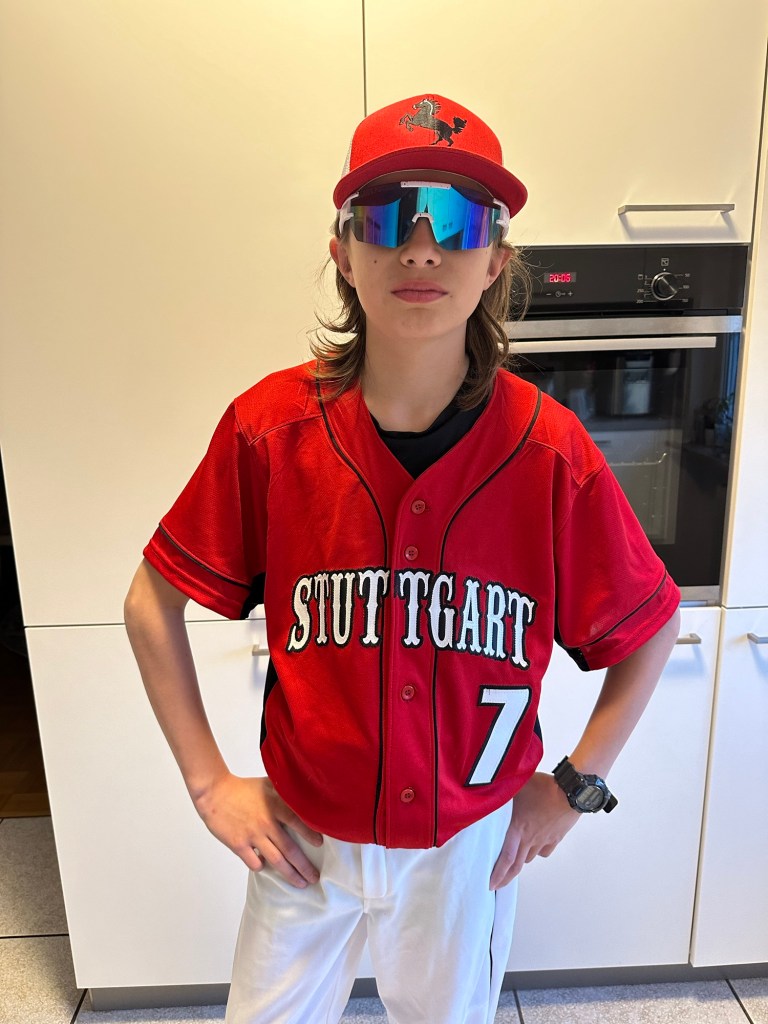 On Wednesday, Ryan was supposed to have a baseball scrimmage against the local German team, but sadly the snow and hail that afternoon meant the game was cancelled. He still looks pretty good in his new uniform though!