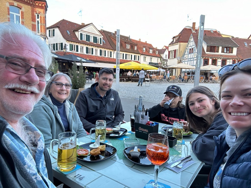 After a long nap, they discovered that they had left their medications at home- oh no! We called our doctors office and they told us to come in the following morning with a list of what we needed and pictures of the prescriptions. Once we had procured those from their doctors back in the US, we took them to dinner at the Brauhaus in our town.