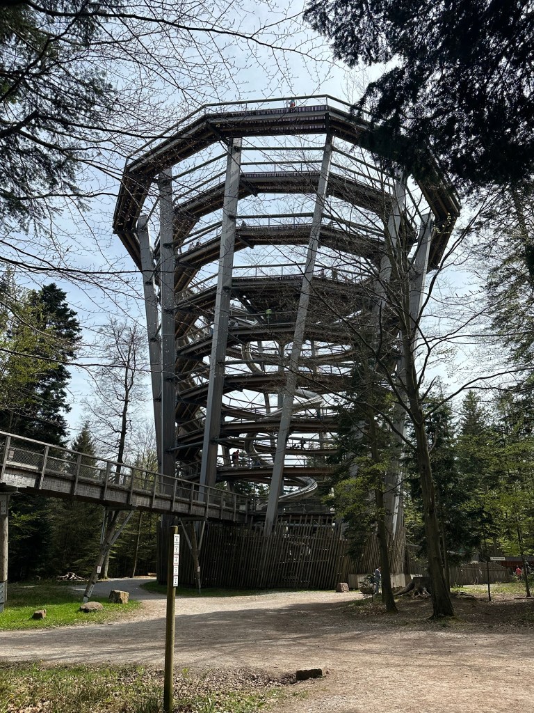 At the top, we stopped for some snacks of pork neck sandwiches and langos, and then went to the Treetop Walk. We walked the whole boardwalk and then climbed the Black Forest Tower to take in the views across the Black Forest. We ended the visit there with a slide down the giant slide to the bottom.