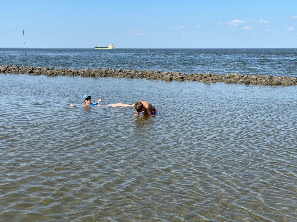 We allowed ourselves to sleep in a little bit the following morning, and after breakfast, we packed up the car and got on the road again. Our destination was Cuxhaven, a beach town on the North Sea coast. But first, we stopped in Bremerhaven to go to Decathlon, Germany’s big sporting goods store, to pick up some water shoes we would need for Cuxhaven. We intended it to be a quick stop, but we can never escape that place without being drawn down every aisle and sucked into making way more purchases than planned.