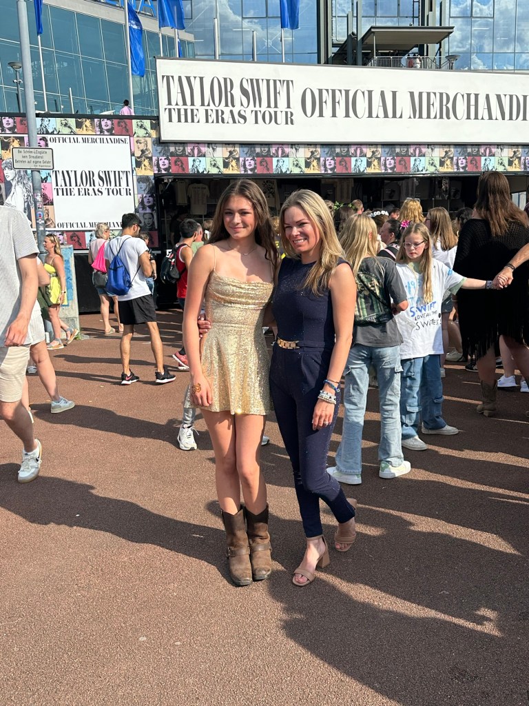 Thursday, we dropped off the dogs and departed mid-morning for Gelsenkirchen, in northwest Germany, where Brooklyn and I were attending Taylor Swift’s Eras Tour! We left in plenty of time to get to the concert but ran into a lot of traffic along the way. So, once we got to the hotel, we only had a few minutes to change clothes and hop back in the car for Matt to drive us to the stadium, which was about 30 minutes away. Traffic was so bad we eventually just got out and walked the rest of the way.