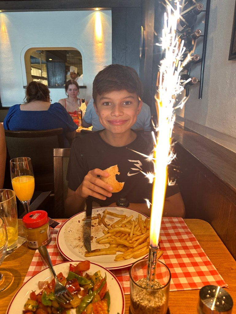 We were so happy when it was time to return the bikes, not because the tour was over, but because not one person in our family had a crash during the tour, although there were some close calls! This was a first for our family! After the tour, Ryan selected Block House, our favorite chain steakhouse, for his birthday dinner. We all ate too much, followed by the Block House birthday celebration, which included a champagne toast.