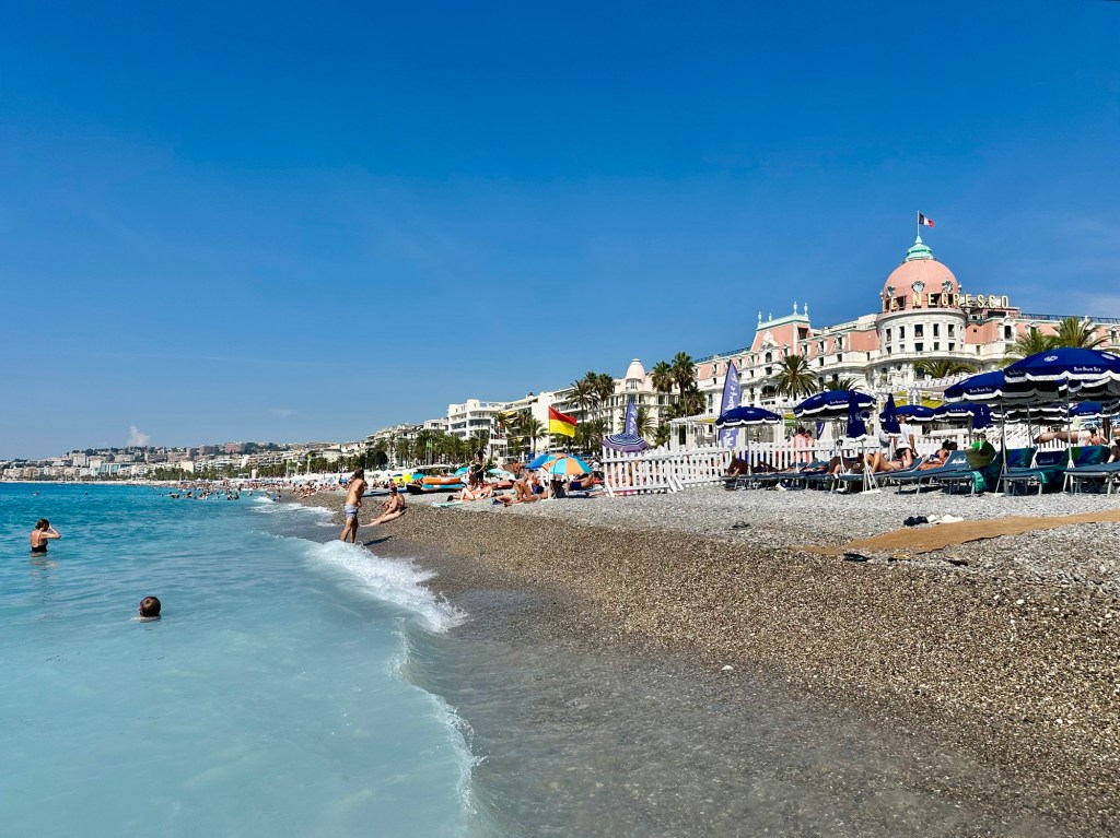 Saturday morning, we were all tired from our travel day the day before, so we slept in a little before searching for coffee and croissants. We found a cute cafe on the Promenade d’Anglais and then walked along the beach.