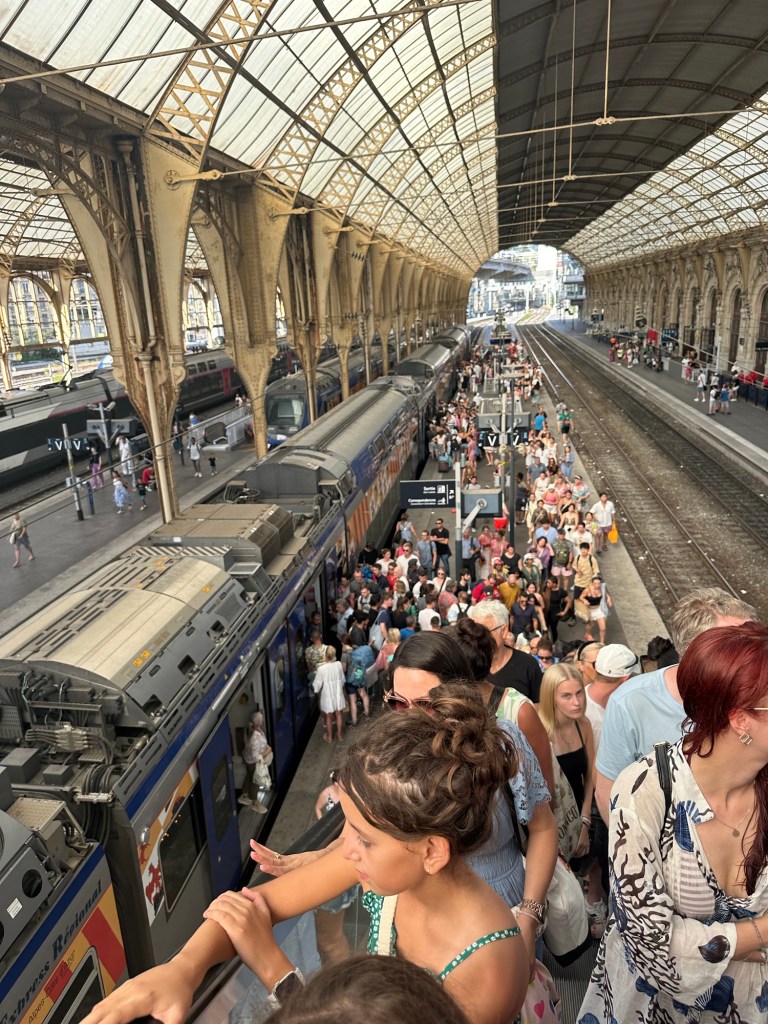 We had been wearing our bathing suits all day and were drenched with sweat in the heat when we arrived. We quickly jumped in, cooled off, and then realized we didn’t plan well as we had no towels and nothing to sit on 😂. We changed out of our wet bathing suits in the changing room and then took the bus back to the train station. It was a hot and crowded train ride back to Nice!
