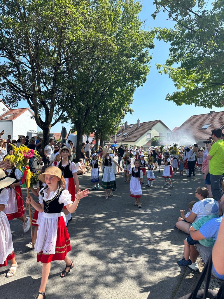 It was also HOT! Not only was the temperature over 90F, but the sun was intense, and you could feel yourself burning if you weren’t under shade. Germany has weird high UV index days, and this was one of them. The fire department even opened a fire hydrant near where we stood on the parade route to spray the parade participants down and keep them cool.