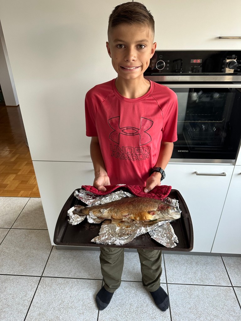 Tuesday night, Ryan cooked us one of his fish, the salmon, from the camping trip the week before. He baked it with lemons, garlic, and chives, and it was so good. It was so sweet of him to cook for us.
