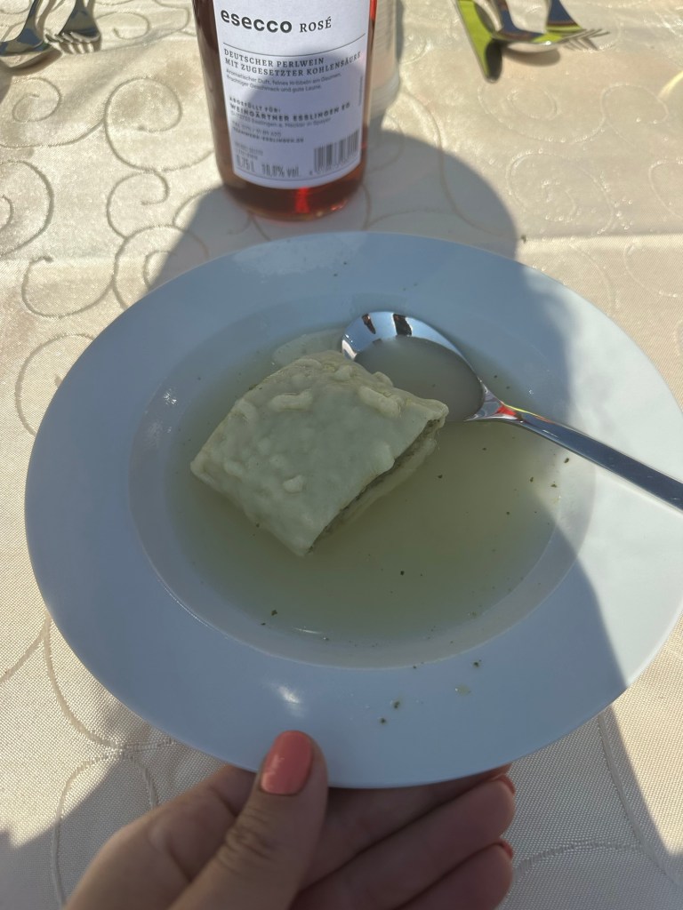 When we cleared all the vines and cleaned off our extremely sticky hands, Gottfried’s wife served us lunch right in the vineyard. We had maultaushen suppe and potato and cucumber salad, paired with rosé from Teamwerk.