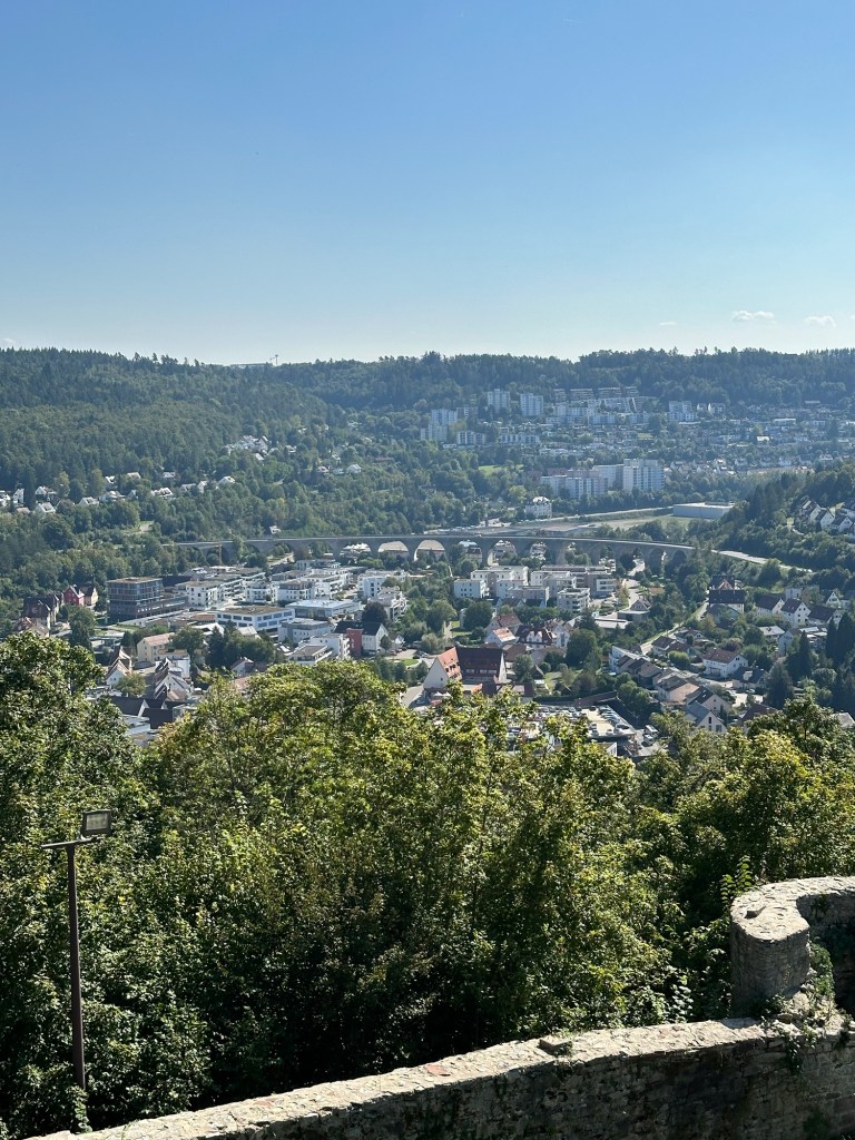 I drove through Nagold last weekend on my way to drop off and pick up Ryan from Altensteig and was eager to come back and explore. A castle ruin overlooks the town from a mountaintop, and the mountain is bordered by the Nagold River and a viaduct bridge.
